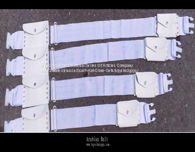 Arabian Belt (Plug button) white.specification: L,XL,XXL,XXXL, packing: 1 pcs/box 1 dozen/inside box, 120pcs/carton,mixed color packing or monochrome packing. The belt perennially exported to Yemen,Malaysia,Algeria,Saudi Arabia,the Middle East and Gulf countries, we undertaking foreign trade orders perennially. Meanwhile,our company also produce Arabian head hoop ,Arab wool head hoop,Arabian turban,Arabian hand hoop,Koran bookshelf and other Arabian producuts,welcome customers come to order.