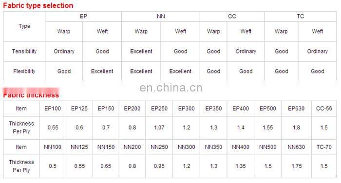 With the advantages of thin belt with light weight, high tensile strength, fatigue and wear resistance, erosion resistance of water/steam/chemical, good impact resistance, excellent groove formation ability, low elongation, good stability ever heated and long service life, it's the developing trend of fabric conveyor belt. It is mainly used in harsh condition of long distance,heavy-load, high-chemical corrosive etc, it is especially suitable for transporting in moist environment.