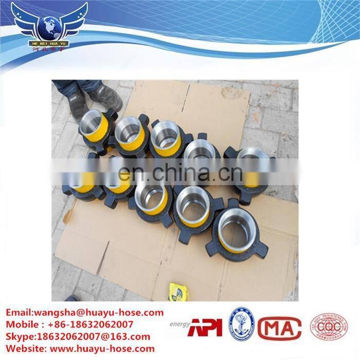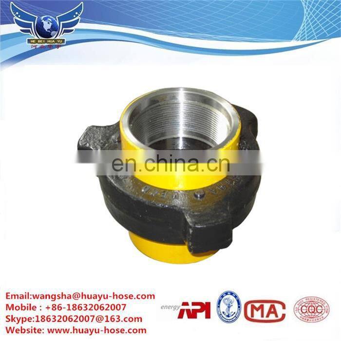Figure 100 hammer union is black nuts yellow parts. These hammer union with precision machined metal-to-metal sealing surfaces. Recommended for low-pressure manifold line connections and application in air ,water, oil and gas. Service the working pressure is not more than 1000psi. And we can be produced according to customer requirements .