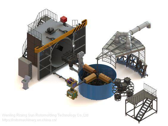 Rising Sun 3-Arm 5-Station Carousel Rotational Rotomolding Molding Machine for Plastic and Rubber Hollow Container Tank Producing
