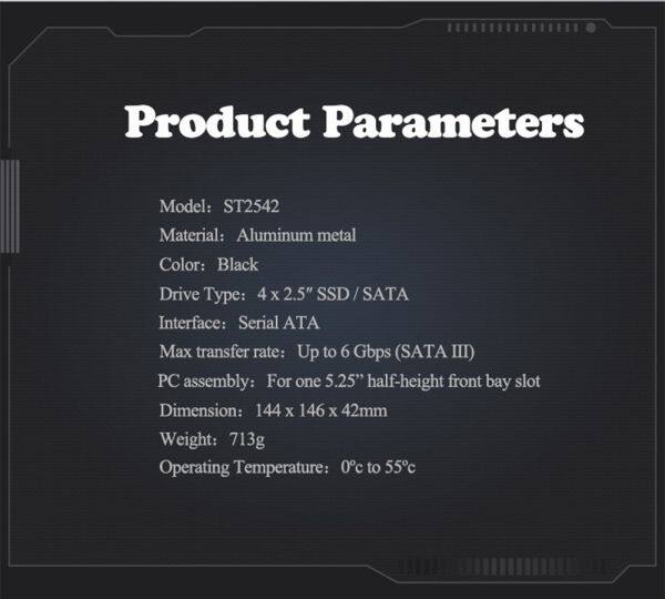 Unestech 2.5in Aluminum 4-bay mobile Rack Backplane for 2.5in SATA/ miniSAS drives Hot Swap SSDs/HDDs from 7-15mm hdd enclosure