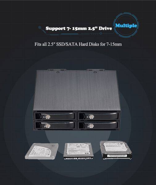 2.5in Aluminum 4-bay Mobile Rack Backplane for 2.5in SATA/ MiniSAS Drives Hot Swap SSDs/HDDs From 7-15mm Hdd Enclosure