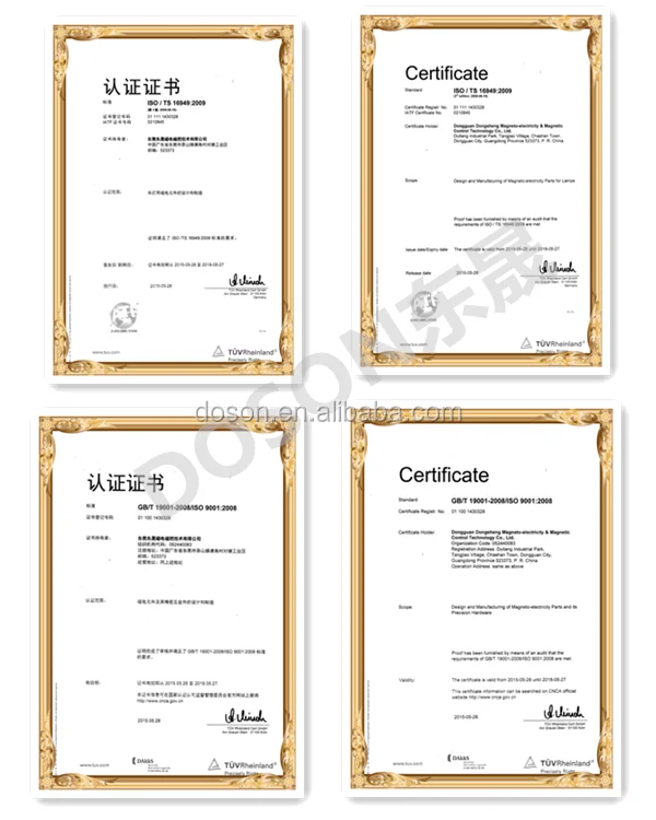 Doson Magnetic & Magnetron Tech Co.,LTD is professional in the design and manufacture of an array of quality solenoids for more than ten years, awarded supplier for Military hareware in magnetic & magnetron. And now Doson is starting to be listed on the New OTC Market. Excellent in R & D of weapons carrying solenoid, weapons separated solenoid, tube solenoid, push-pull solenoid, dc solenoid, rotary solenoid, attraction solenoid etc. We are the first enterprise, activating to apply for Chinese military standard certification “GJB 9001B-2009” in Chinese electromagnetic field.
