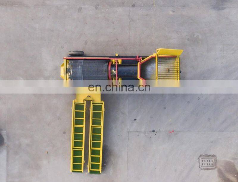 4) Double sieve trommel screen with NSK bearings and high pressure water spray pipes on both sides for washing, screening and separating.