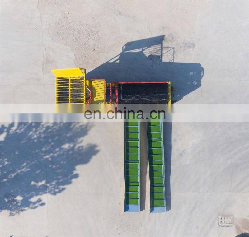 4) Double sieve trommel screen with NSK bearings and high pressure water spray pipes on both sides for washing, screening and separating.