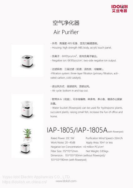 Rated power: 2. Purification wind speed: 3. Negative ion concentration: > 6 million PCS /cm3
