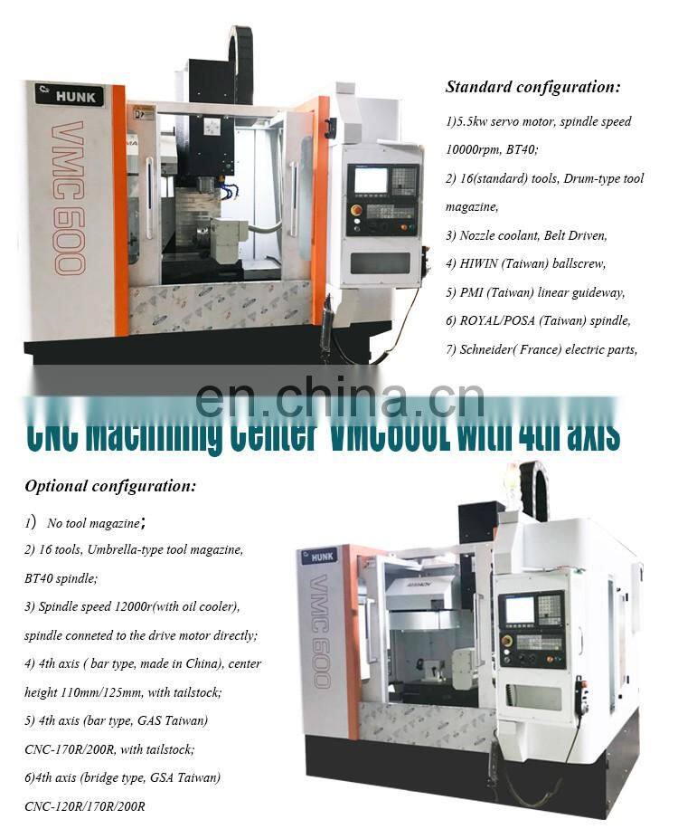 The VMC is suitable for the mechanical processing and mold making.And it can adapt to the processing requirement from rough machining to finish machining.it can also finish many working procedures like milling,drilling,tapping,boring.etc.