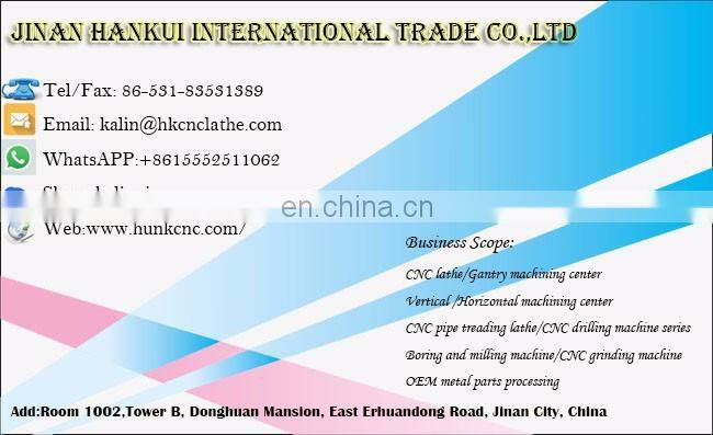 Jinan Hankui international trade co., ltd, which is the subsidiary corporation of Shandong Hunk precision machinery Co., Ltd., is a CNC machine tools company, located in the beautiful capital Jinan city, integrated with manufacturing, processing and sales. It was set up by the former Jinan Machine tools factory employees. It has a subsidiary corporation Jinan HANKUI International Trade Co., Ltd. The plant area is about 10,000 square meters. We have a number of R&D persons and technicians who have more than 20 years experience of machine tool design and assembly. We have mastered the advanced machine tool technology and were dedicating to service customers domestic and abroad and welcomed deeply.