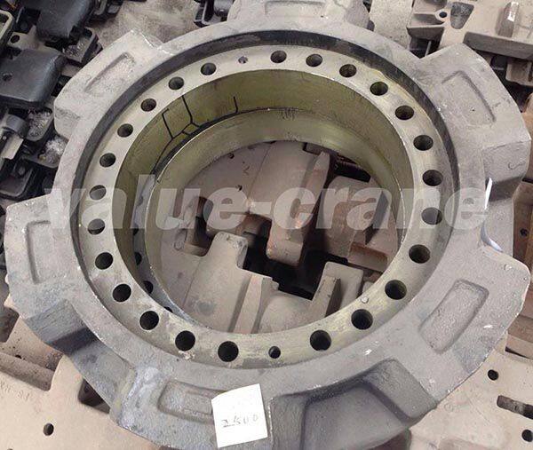 IHI CCH2500 Sprocket also is called casting IHI CCH2500 driving Sprockets or IHI CCH2500 sprocket wheel, it is made of 40Mn2, under casting and heat treatment. Its warranty time is 2000 working hours. Our sprocket wheel uses good hardenability steel, so that the crawler crane could reduce the wear of driving tumbler, that is important to ensure high-quality work and high efficiency, and has good impact toughness, a certain depth of quench layer and transition layer to improve the bearing capacity, wear resistance and resistance to contact fatigue. Through whole quenching & high temperature tempering, then the integral key surface quenching. We take advanced equipment and technology, and carry out strict tests to ensure the quality, such as chemical composition, hardness, impact toughness, precision, function, and so on. This products is called sprocket in crawler crane and excavator, and segment in bulldozer. The sprocket is connecting with diving motor, transmit power to the track directly, so as to drive the chassis parts. The products mainly have these processing methods: casting, machining, heat treatment such as tempering, quenching, medium frequency quenching, harden. It also is called: sprocket , crane sprocket , crawler crane sprocket , driving sprockets , sprocket wheel , sprocket-wheel , wheel drive , driving roller , driving wheel , tumbler drive , undercarriage parts , crawler crane parts and so on. | |