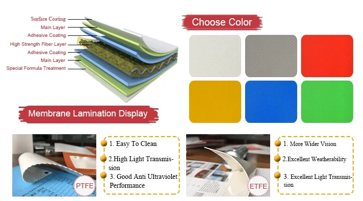 You are free to choose different membrane structural materials, its life varies with different surface coating,usually up to 12-50 years.