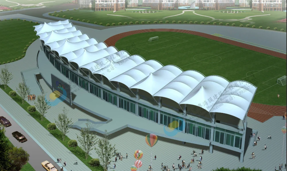 Membrane structure building appeared in the 1960 s, with its concise, lively and dynamic appearance, firm with soft, perfect combination of force and beauty, So far has been very widely used in the western developed countries. As the latest architectural form, with the most into environmental protection and energy saving flexible membrane material for roofing, have strong physique sculpture, the building modeling to construction of the full performance of ecological, cultural connotation, has contemporary feeling extremely, is the city's business card and landmarks.