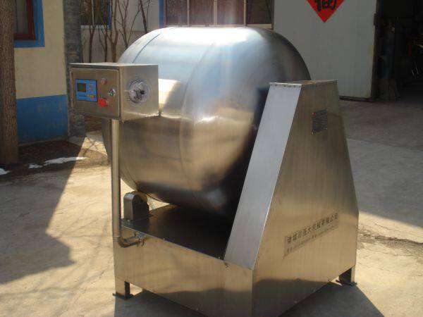 Vacuum Meat Tumbler is in a vacuum state, the physical impact principle to let the meat scroll up and down within the drum, hit each other, beat, resulting in a uniform distribution of massage, pickled tasty role. May be uniform absorption of pickled meat, increase meat adhesive force and elasticity. When the machine has been injected into the meat tenderizer of the machine, the device barrel after a slow gentle roll, so that a homogeneous meat squeeze, massage, accelerate the release of the meat in salt-soluble proteins at the same time make the added material ( starch, etc.) and body protein fused to each other to improve the organizational structure of the meat, increase the production rate. Further product can tenderize meat, meat increased water retention, good taste, color and texture and beautiful slice, high-yield and other characteristics.