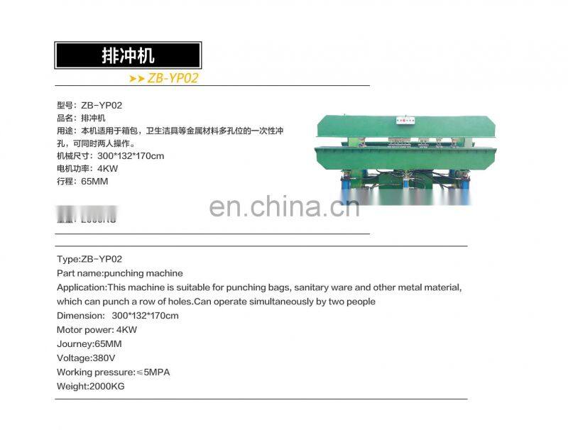 Application: this machine is suitable for punching bag, sanitary ware and other metal material, which can punch a raw of holes and can be operated by two people simultaneously.