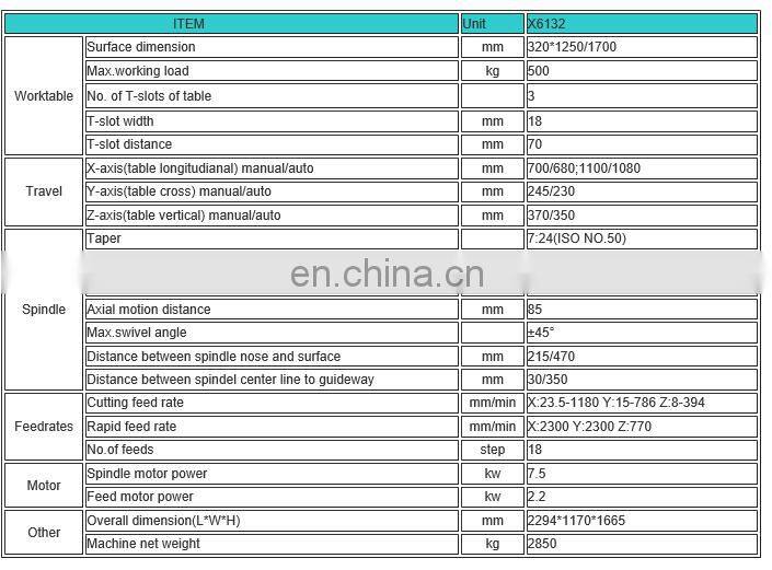 The product is easy to operate and reliable in performance. The machine is widely used in all kinds of mechanical processing, processing all kinds of plane, groove, gear, etc. At the same time, the machine can be configured universal milling head, round table, dividing the first milling machine accessories, can further expand the scope of the use of machine tools.