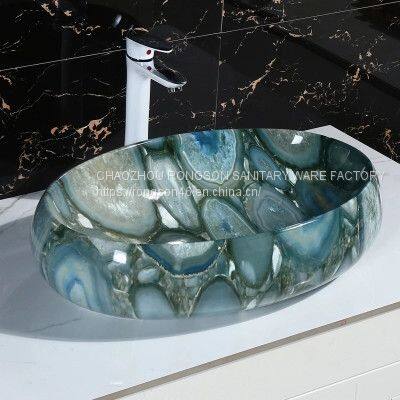 Factory ceramic oval golden basin sink