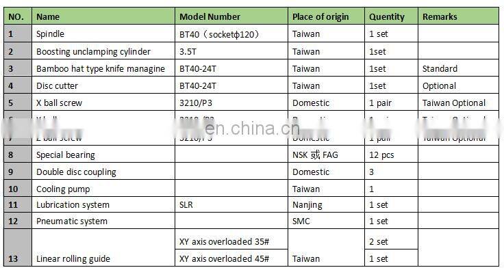 he machine matched with 24 disc type cutter (standard) or 16BT40-20 carousel style tool bank (optional) supplied by Taiwan professional manufacturers. The tool changes accurately , using short time and high efficiency. After a million times running test, it meets reliability requirements; matched with damping structure, it can reduce the impact when move to ensure the service life of the tools;