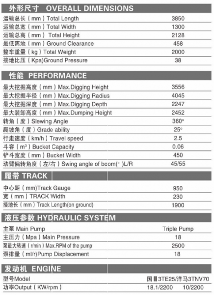 It can equip with Auger, Wood Grab, Roof, Ripper, Rake, 200mm Narrow Bucket, 400mm Standard Bucket, 500mm Leveling Bucket