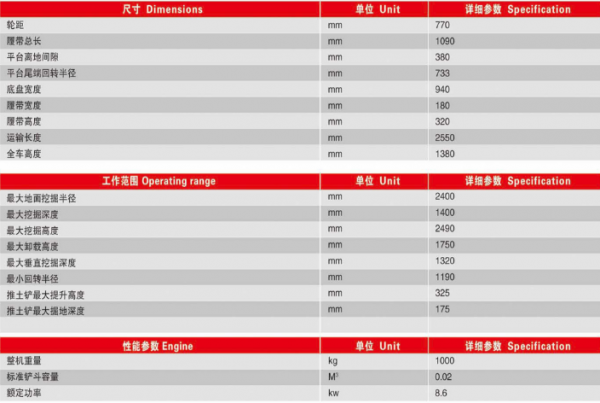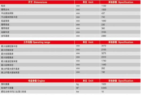 It can equip with Auger, Wood Grab, Roof, Ripper, Rake, 200mm Narrow Bucket, 400mm Standard Bucket, 500mm Leveling Bucket