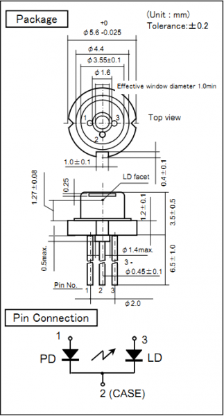 | Monitoring Output Current | Im | Po=20mW | 0.1 | 0.2 | 0.5 | mA |