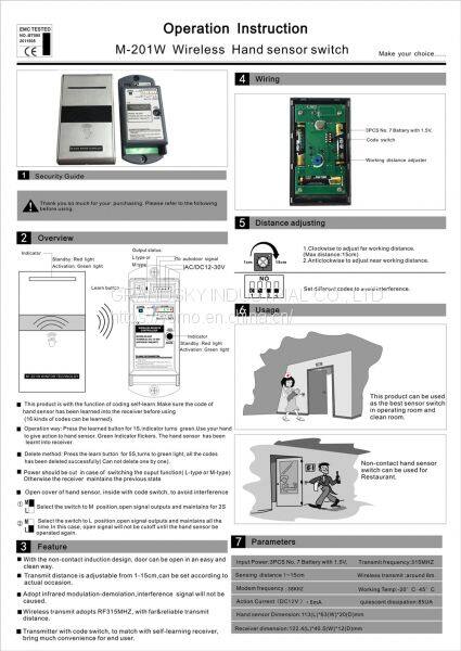 CNB-201W Wireless Hand Sensor SwitchUS$ 10 - 300MOQ: 1 Piece