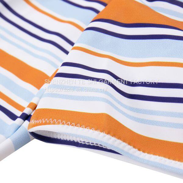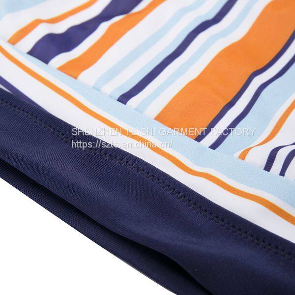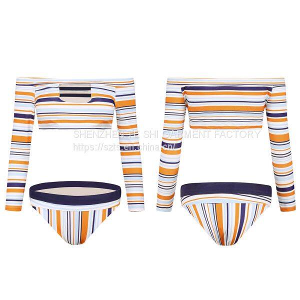 Sexy striped print bikini long sleeve two-piece suit with chest pad without steel support
