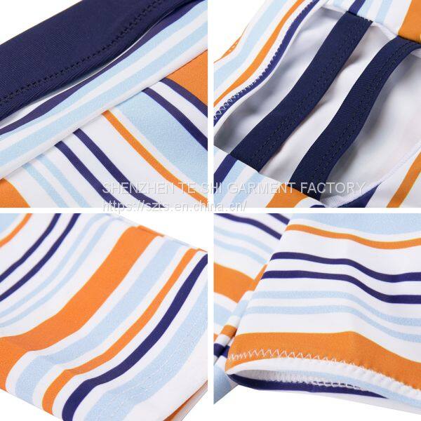 Sexy Striped Print Bikini Orange White Pattern