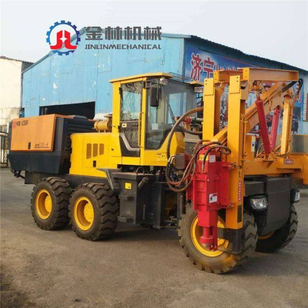 The guardrail pile driver is a kind of highway guardrail steel pipe pile pressing equipment. It adopts diesel power and full hydraulic mechanical transmission. It has the characteristics of light driving, high piling precision, durability, energy saving and environmental protection. It is especially suitable for highway guardrail installation, maintenance and Field repair construction for repairs. The highway guardrail full hydraulic pile driver is a new type of full hydraulic piling equipment that is developed and produced by technical R&D engineers and field service technicians according to the actual situation in various working conditions. After continuous research and development and updating, it is excellent in energy saving and environmental protection. In the completion of the installation of highway guardrails of various complex formations, it fully embodies its characteristics of high quality, high efficiency, high energy saving and long life. The hydraulic guardrail pile driver has the advantages of accurate piling positioning, fast movement, high precision, long service life, fuel saving and environmental protection. It is a new type of equipment for highway guardrails.