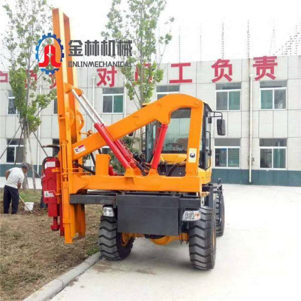 The guardrail pile driver is a kind of highway guardrail steel pipe pile pressing equipment. It adopts diesel power and full hydraulic mechanical transmission. It has the characteristics of light driving, high piling precision, durability, energy saving and environmental protection. It is especially suitable for highway guardrail installation, maintenance and Field repair construction for repairs. The highway guardrail full hydraulic pile driver is a new type of full hydraulic piling equipment that is developed and produced by technical R&D engineers and field service technicians according to the actual situation in various working conditions. After continuous research and development and updating, it is excellent in energy saving and environmental protection. In the completion of the installation of highway guardrails of various complex formations, it fully embodies its characteristics of high quality, high efficiency, high energy saving and long life. The hydraulic guardrail pile driver has the advantages of accurate piling positioning, fast movement, high precision, long service life, fuel saving and environmental protection. It is a new type of equipment for highway guardrails.