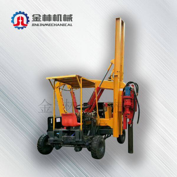 The guardrail pile driver is a kind of highway guardrail steel pipe pile pressing equipment. It adopts diesel power and full hydraulic mechanical transmission. It has the characteristics of light driving, high piling precision, durability, energy saving and environmental protection. It is especially suitable for highway guardrail installation, maintenance and Field repair construction for repairs. The highway guardrail full hydraulic pile driver is a new type of full hydraulic piling equipment that is developed and produced by technical R&D engineers and field service technicians according to the actual situation in various working conditions. After continuous research and development and updating, it is excellent in energy saving and environmental protection. In the completion of the installation of highway guardrails of various complex formations, it fully embodies its characteristics of high quality, high efficiency, high energy saving and long life. The hydraulic guardrail pile driver has the advantages of accurate piling positioning, fast movement, high precision, long service life, fuel saving and environmental protection. It is a new type of equipment for highway guardrails.
