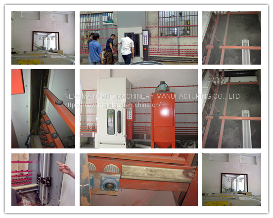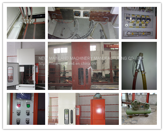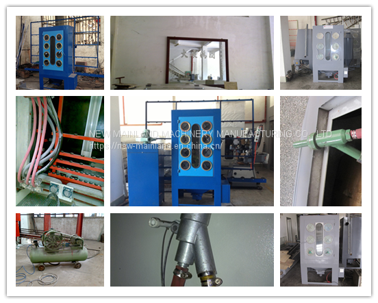 This machine has full automatic and manual work two functions, it has 3 automatic blasting guns, 1 manual blasting gun, the nozzle of gun was made by special material, it can increase blasting gun life span, sandblasting speed is about 12-15m2/h.