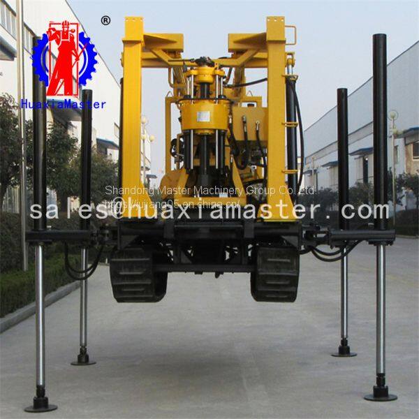 The crawler hydraulic water well drilling rig is equipped with four high strength threaded legs (or hydraulic high leg). The installation and adjustment is fast and convenient. It can be used for leveling of work plane, loading and unloading vehicle, which reduces the hoisting cost and improves efficiencyand works as auxiliary support.