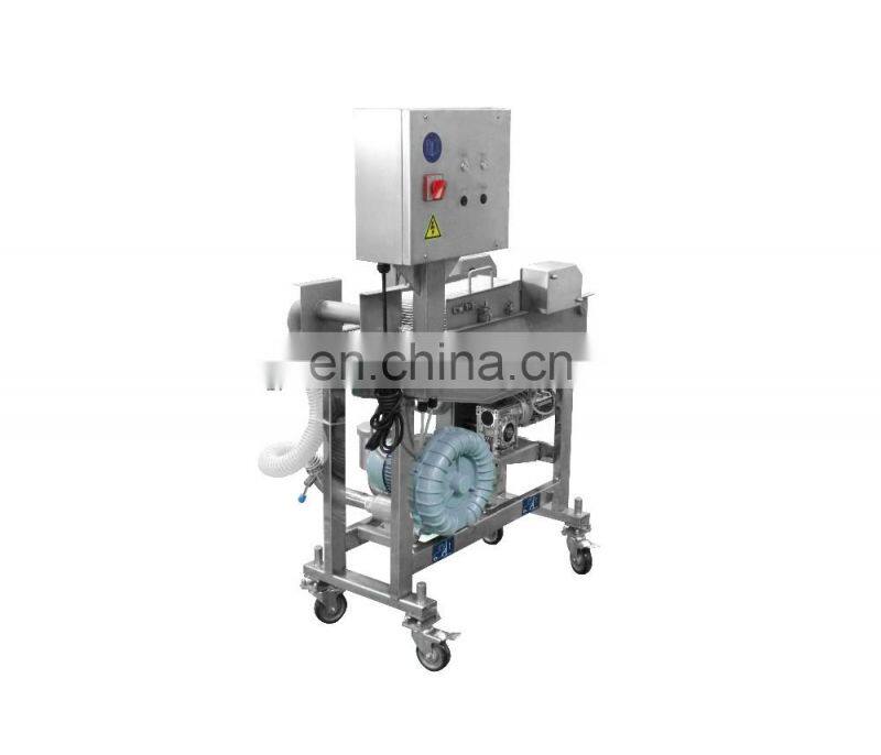 we use this wind air cooling machine after the frying machine.when the temperature drop to 30 degree,we put them to the freezer machine