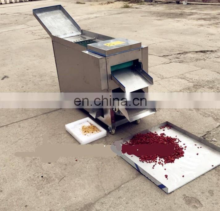 Th chili cutting and seed separating machine is easy to operate, the dry pepper dicing machine is simple to adjust and easy to maintain, the price of the dry pepper cutting machine is low, the whole body is closed to reduce the dust in the site and the air, and the safety is safe.