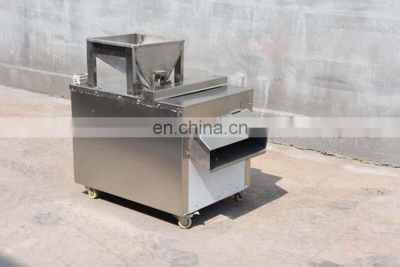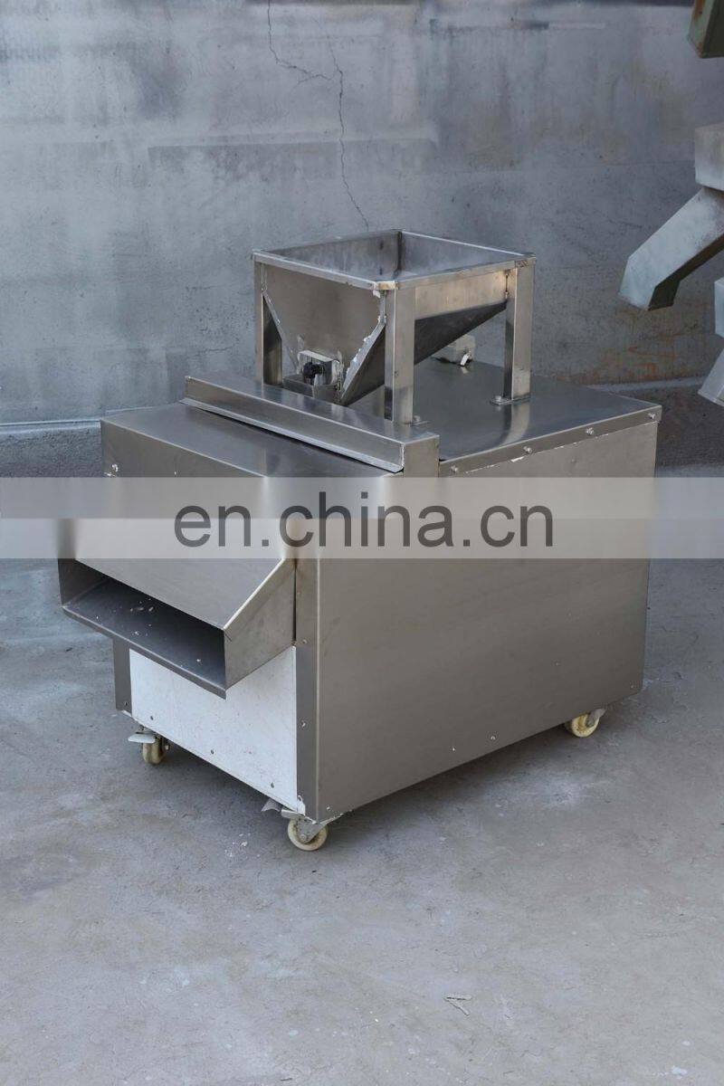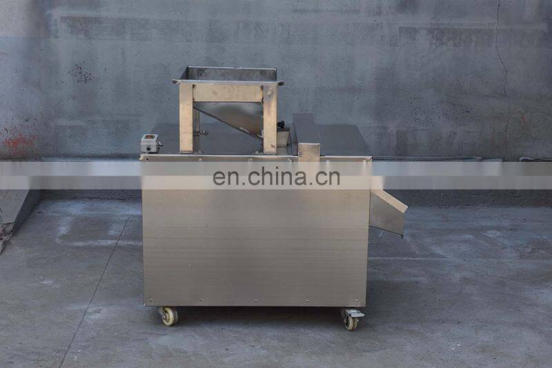 The peanuts ,cashew and almond are evenly fed into the inlet, and the cut material is sent to the reciprocating knife chopping mechanism to be chopped by the conveyor belt with adjustable speed, and then vibrated and screened to obtain the granules of the required specifications.