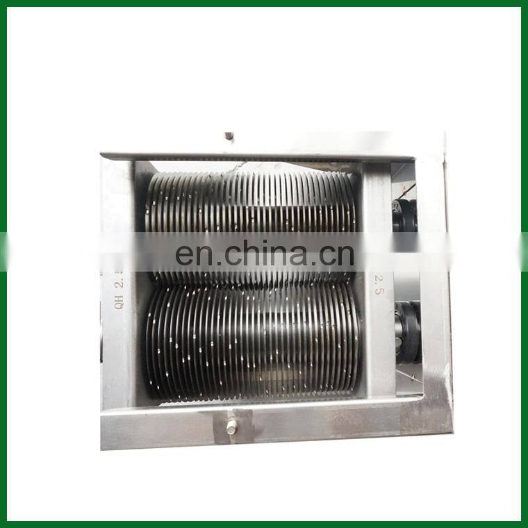 This machine is used to cut fresh boneless meat into slice, shred and dice. The cutter adopts external suspended design, easy to wash. Machine with safety protect switch. Cutting size can be customized. The cutter is made of special rolling-mill section, with hardness of 52°. More durable in use.