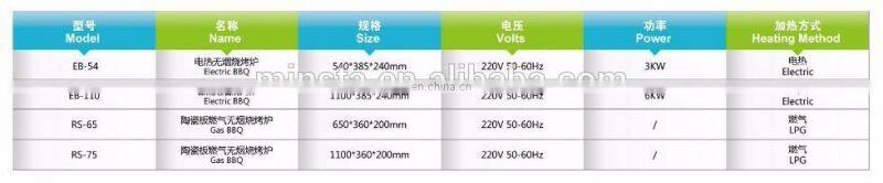 Grill Machine are made of all stainless steel ,so that the grill is with more strong structure and safer to use.The removable gridiron on the bbq grill makes operation and cleaning be more convenient. Also,there are two heating tube inside the bbq grill so that the heating is more evenly, then the food can be more dilicious. And, there are two individual thermostats for two heating elements, save your energy, you can only turn on one said or turn of both of them if needed. The light indication on the grill make it earlier to supervise the working status of grills. It is the best choice for party, meeting, family, and so on. More important is that it is smokeless. the old style smokes when using it. It is very bad for health and environment. But now this problem fixed because of RS series smokeless bbq grill.