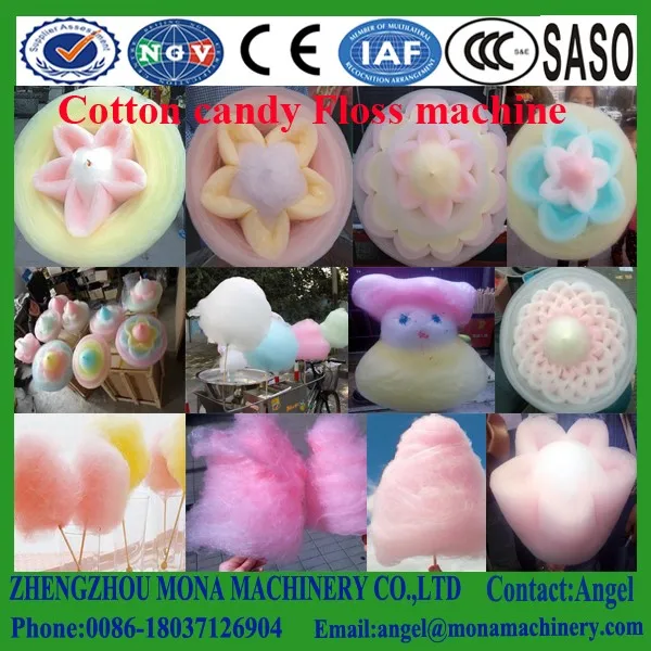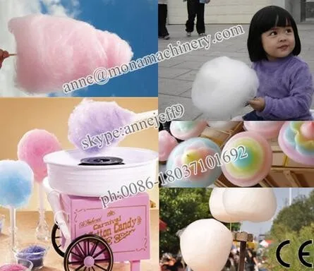 This cotton candy machine with sugar as the main raw material, adding auxiliary ingredients, can produce a variety of tastes, a variety of color cotton candy, produce the product is no longer a single white, but red, yellow, blue, green, purple, and other colors, flavors of cotton candy, such as: green apple, strawberry, grapes, melon, peach, orange, taro, environmental health, and delicious.
