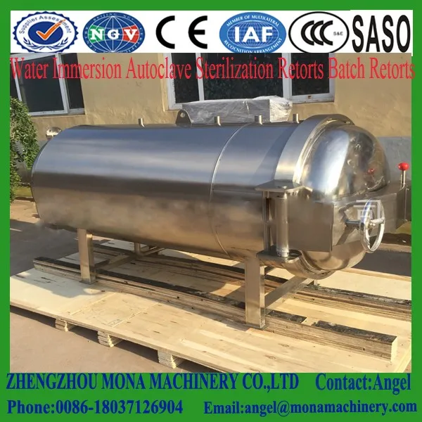 The horizontal sterilizing pot is applicable for sterilizing the tinned oral liquid ,meats ,cans ,beverage and medicine in high temperature.At the same time it can test and conduct a vacuum test after the canning,locking and sterilizing .This sterilizing pot uses the round cylinder taking the compressed air as reaction force. The canned materials can be cooled quickly and used compressed air as reaction force to keep the glass bottle from breaking ,its cap falling off and loosing after they have been sterilized in the pot .