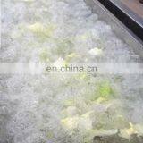 The principle of the vegetable and fruit bubble washing machine is mainly to use an appropriate amount of water in the front part of the box to heat the water through a heating tube.When the raw material passes through the box, it will be rolled under the combined action of the bubble machine and the water, and will continue to advance with the mesh belt.When it comes out of the water, the high-end has a sprinkler and high-pressure flushing.