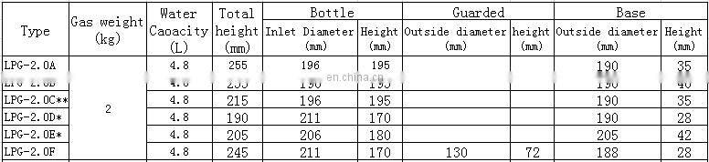1.The specifications of 2kg lpg gas cylinder