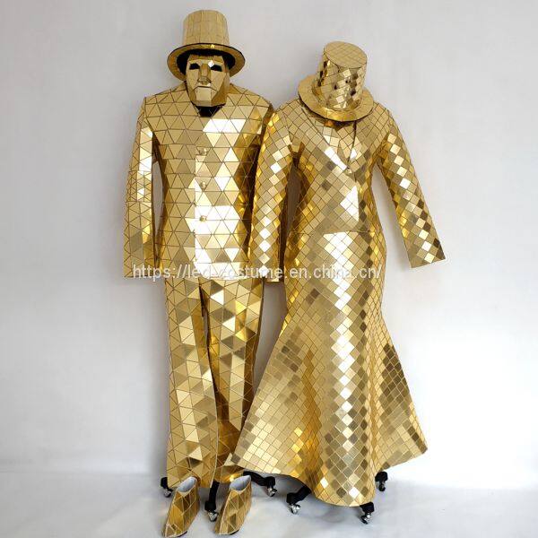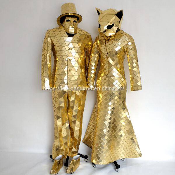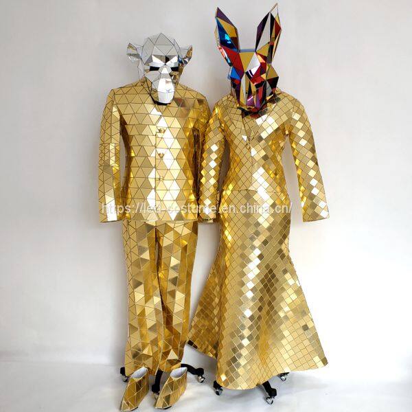 Golden Silver Colorful Disco Ball Mirror Man Dress Suit Costume for Stage Performance
