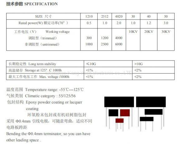 | Resistance | 10KR~10GR | Technology | Thick Film | |