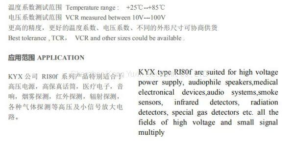 KYX type RI80f are suited for high voltage power supply, audiophile speakers,medical electronical devices,audio systems,smoke sensors, infrared detectors, radiation detectors, special gas detectors etc. all the fields of high voltage and small signal multiply