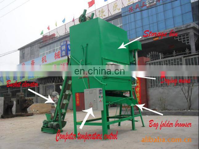 Working process: pellets through the bucket elevator go to the drying ovens until the oven fill to the full, then the pellet will fill in the storage bin to prepare for the next batch drying process ------- then turn on the automatic temperature control device, the temperature is adjusted to your needs, such as 100 degrees. ------ When the temperature reaches 100 degrees, the machine automatically stops heating ------- open fan (Note: At this time air outlet is closed state), the heat is doing thermal cycling sport in the ovens. 5 --- 10 minutes later, the pellet is heated evenly -------- Then open the outlet, the water will take away by the hot air and achieve the purpose of drying.