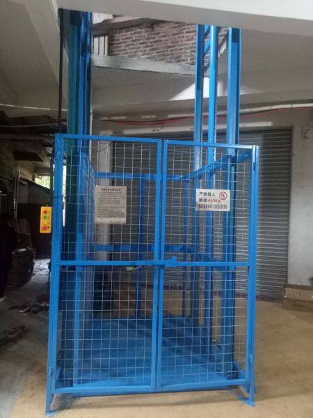 Hydraulic freight elevator lift, hydraulic goods lift is a very effective and safe hydraulic lift platform, as the minimum height of the platform is only 150-300mm, it suits the industrial working site which is not easy to make pit or very small hoist way, and no need fasten point at the top. The cargo lift is mainly used for 2, 3 or 4 floors workshops, restaurant which is below 25m height to transfer cargo, there are single rail, double rails and 4 rails in model, it is stable, easy operation and safe etc, and it is the most ideal hydraulic cargo lift now.