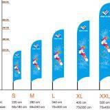 We have 5 different sizes for beach flag drop shape, each size comes with single sided and double sided printing, so there're totally 10 options, you can choose the one that meet your request and favor.