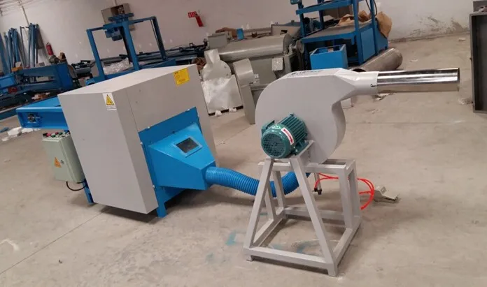 1. The machine is mainly used for filling pillows, sofa, cushion and other bulky cotton fibers products, with larger diameter cotton filling pipe, filling speed is very fast and finished filling product is very fluffy, will not roll into granular shape, the final product is soft and flexible. various fiber cotton are applicable to this model machine.