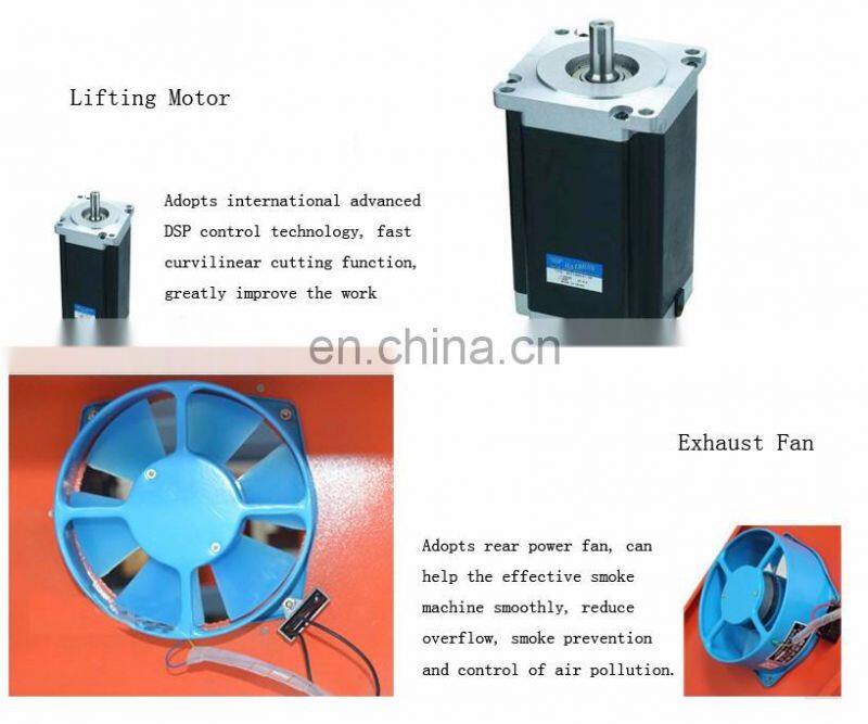 3.For accuracy,we adopt linear guide way, import from Taiwan,very stable, and lens and mirrors ,we import from USA , for the best laser beam ; also,our motor very quite and strong,to insure the fast engraving and cutting speed .