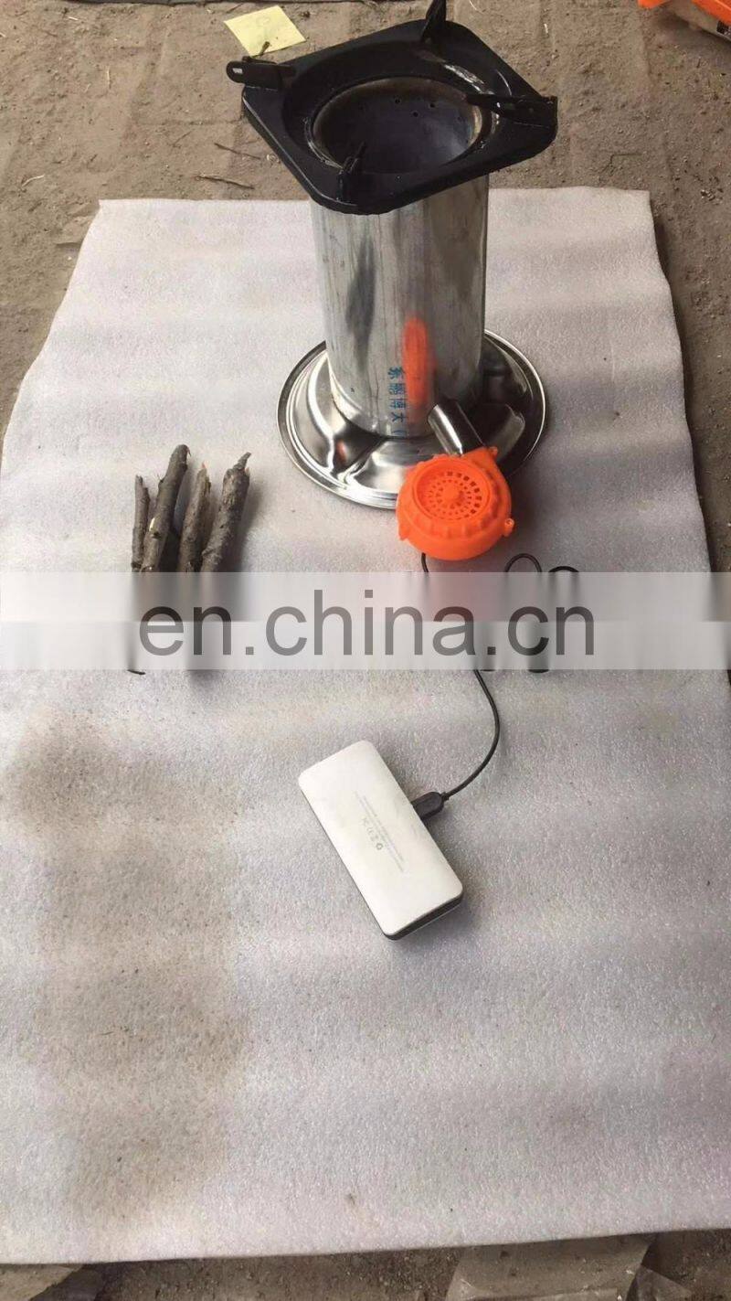 A stove with a micro blower, a data cable, a battery box, can be driven by four 5th battery, or can be driven by mobile phone charging treasure, a weight of 3 kg 35 cm, one pcs in a small carton, four in large cartons !