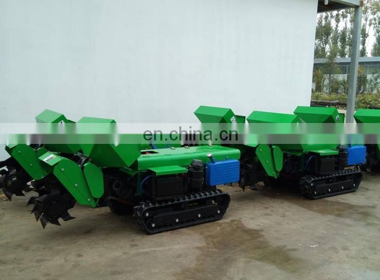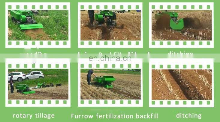 Applicability: Suitable for all kinds of mountains, hills, plains, dry fields, greenhouses, orchards, and narrow operations, suitable for all kinds of soil: frozen soil, hard soil, clay, black soil, mountain, soft soil can be used. The crawler type trenching fertilizer applicator can realize different terrains and soils such as orchards, small plots of land, greenhouses, tea gardens, hills and mountains that large machinery cannot enter.